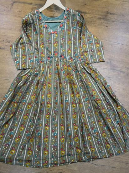 Heavy Rayon Cotton Fabric With Foil Touch Up And Hand Work On Embroidery Fully Stitched With Mul Cotton Inner