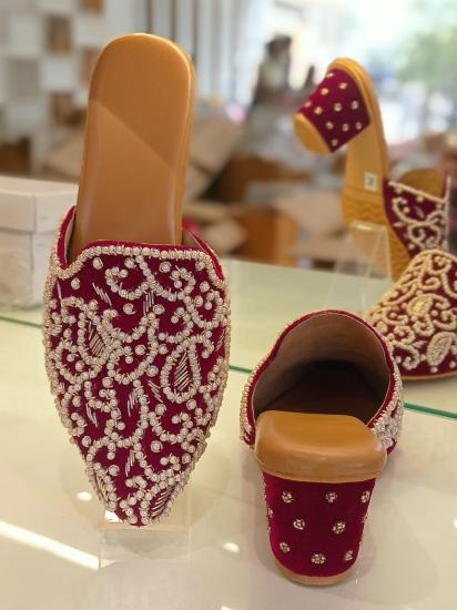 Stone Hand Work Embroidery Party Wear Mules For Women