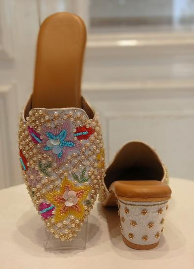 Stone Hand Work Embroidery Party Wear Mules For Women
