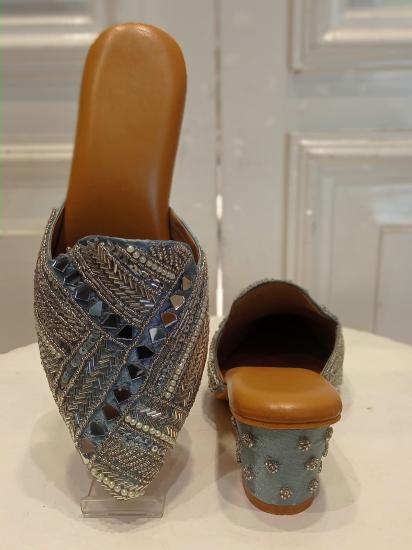 Stone Hand Work Embroidery Party Wear Mules In Heels For Women