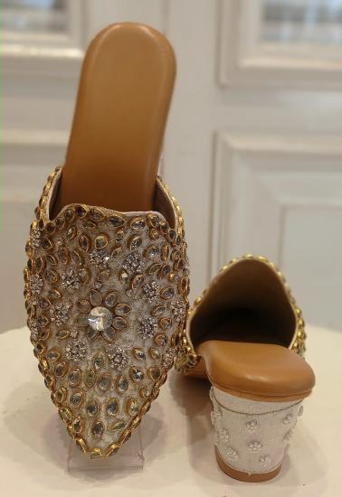 Stone Hand Work Embroidery Party Wear Mules In Heels For Women