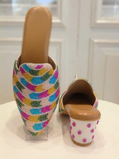 Stone Hand Work Embroidery Party Wear Mules In Heels For Women