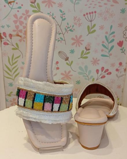 Embroidery slider sandles for women heavy embroidered