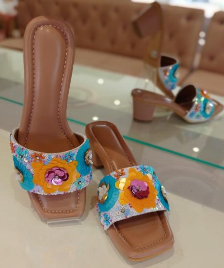 Embroidery slider sandles for women heavy embroidered