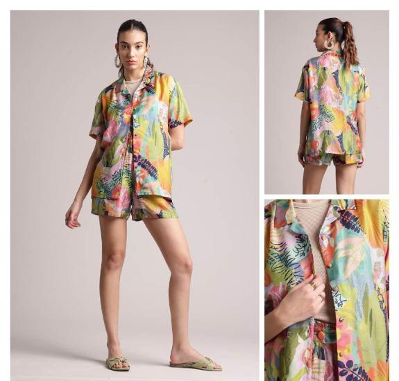 Indo Western Cords Set Printed Design For Women Half Sleeve Fabric Muslin Collar Neck Embroidered