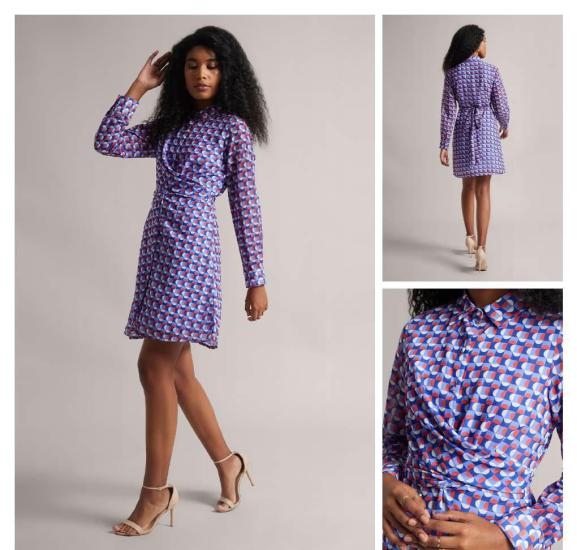 Indo Western One Piece Dress Collar Neck Design Knee Length Digital Printed Full Sleeve Fabric Georgette Embroidered Dress