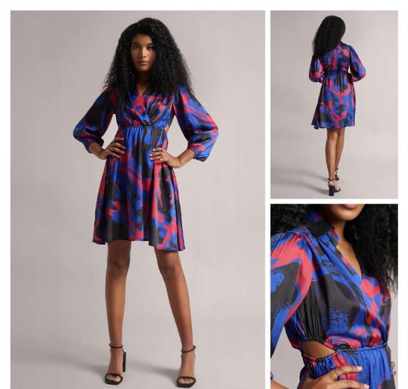 Indo Western One Piece Dress Collar Neck Design Knee Length Digital Printed Full Sleeve Fabric Satin Embroidered Dress