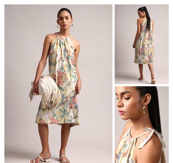 Indo Western One Piece Dress Digital Printed Without Sleeve Embroidered Mini Dress