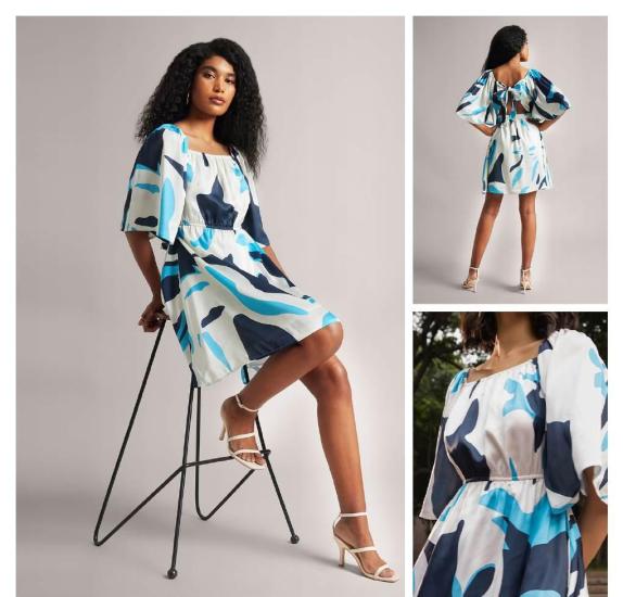 Indo Western Dress Digital Printed For Women Half Sleeve Knee Length Fabric Satin Embroidered