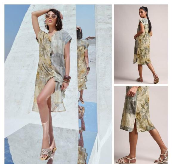 Indo Western One Piece Dress Digital Printed Half Sleeve Fabric Cotton Embroidered