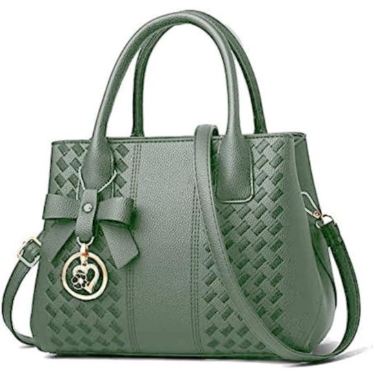 Introducing Our Stylish Green Matte Design 2-Way Strip Handbag For Women.