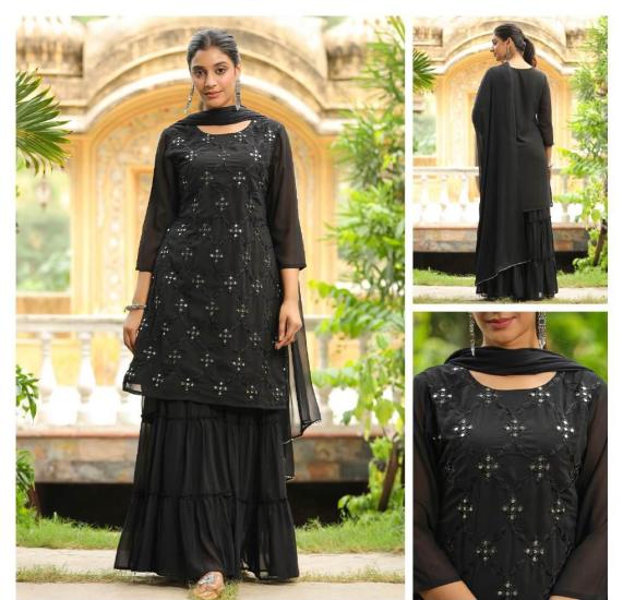 Kurti Sharara Set Party Wear Dress Fabric Georgette V Neck Embroidery