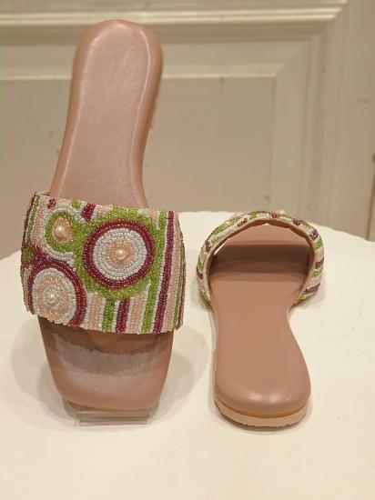 Heavy Embroidered Stone Work Slider Sandeles Without Heels
