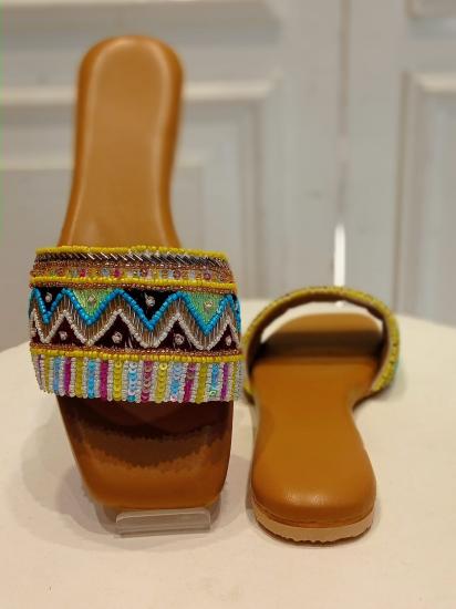 Heavy Embroidered Stone Work Slider Sandeles Without Heels