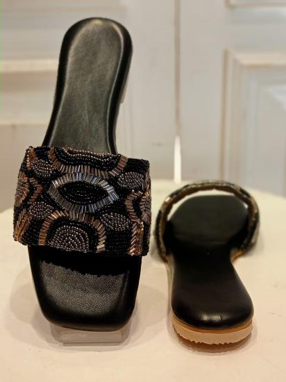Heavy Embroidered Stone Work Slider Sandeles Without Heels