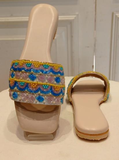 Heavy Embroidered Stone Work Slider Sandeles Without Heels