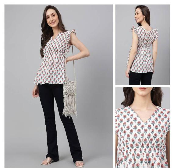 Latest Trending Top Daily Wear Cotton Fabric V Neck Printed Design