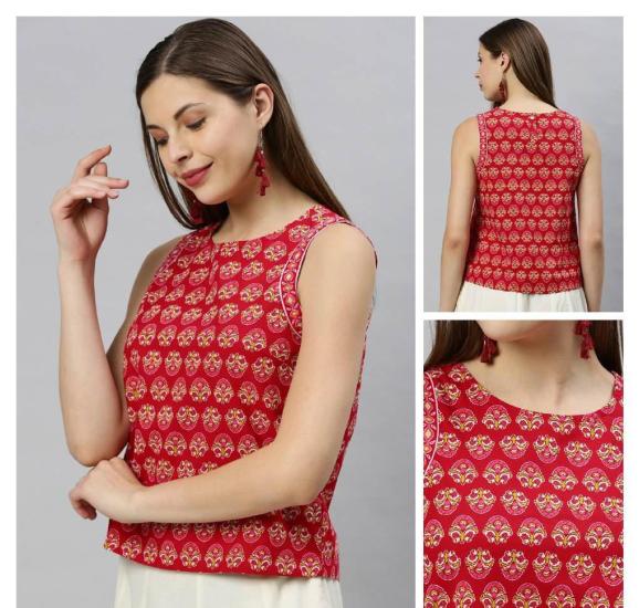 Latest Trending Top Daily Wear Cotton Fabric V Neck Printed Design