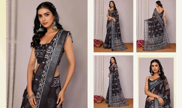 Stylish Linen Cotton Saree Printed Backless Open Shoulder Blouse Design Embroidered Saree
