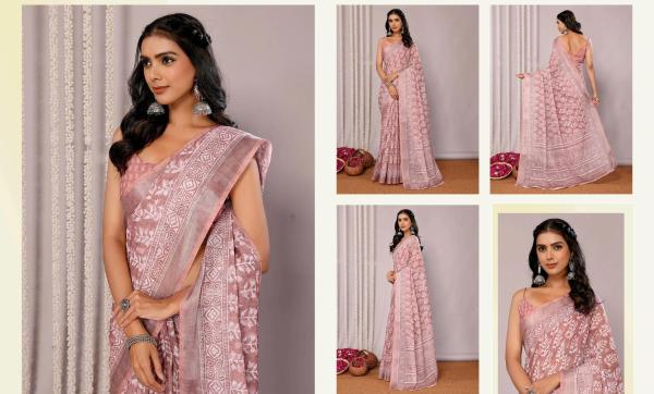 Stylish Linen Cotton Saree Printed Backless Open Shoulder Blouse Design Embroidered Saree