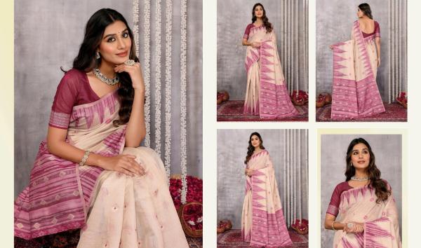 Linen Cotton Saree For Women Half Sleeve Backless Design Round Neck Party Wear Saree Embroidered