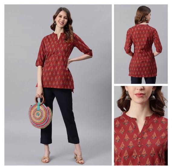 Stylish Long Top Daily Wear Lining Design Cotton Fabric Embroidered
