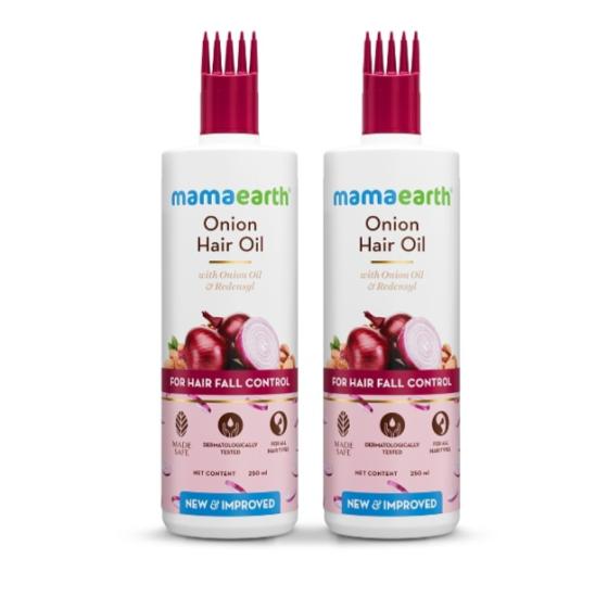 Mamaearth Onion Hair Oil For Hair Regrowth And Hair Fall Control (Combo Pack Of 2 × 250 Ml Each)