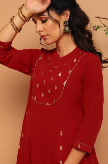 Maroon Poly Crepe Ethnic Motifs A-line Kurta