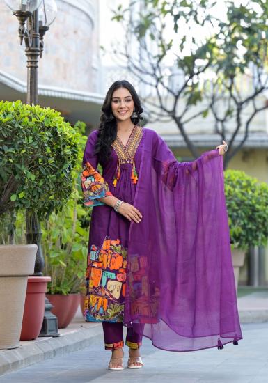 V Neck Pattern Embroidered Pure Cotton Fabric Chiffon Premium Dupatta And Cotton Pant Embroidery With Yolk Styling Fully Stit Ched