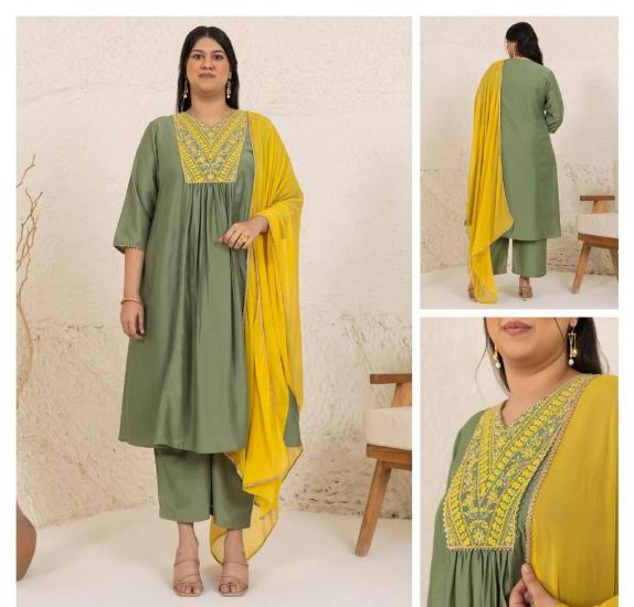 Stylish Middy Type Kurti Pant Beautiful Dress With Duptta Fabric Chinon Embroidered