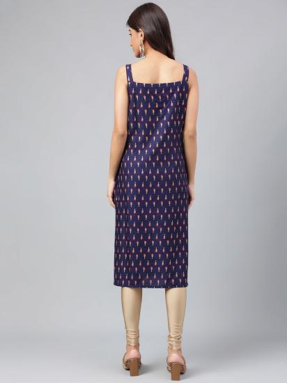 Navy Blue Cotton Foil Printed Straight Kurta
