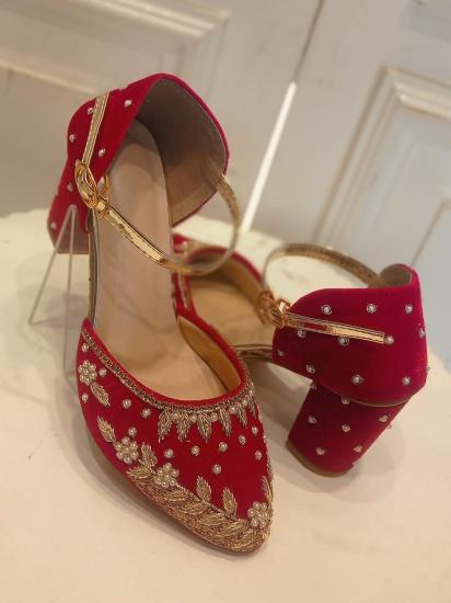 New Half Cut Party Wear Embroidered Block Heels For Women