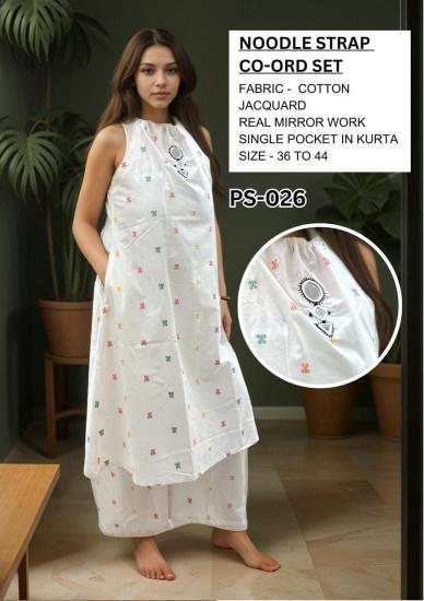 Noodle Stap Cord-Set Fabric Cotton Jacquard Real Mirror Work Single Pocket In Kurta