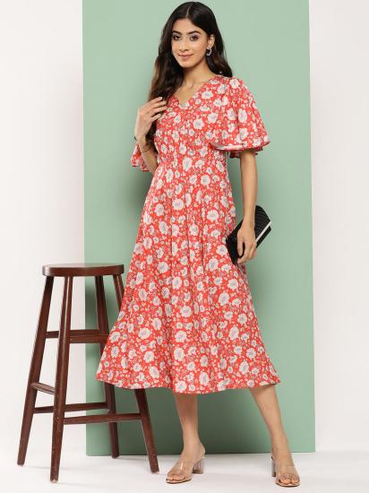 Crepe Fabric Fully Stitched Knee Length A Line Dress Floral Printed Pattern V Nekc Style Flaired