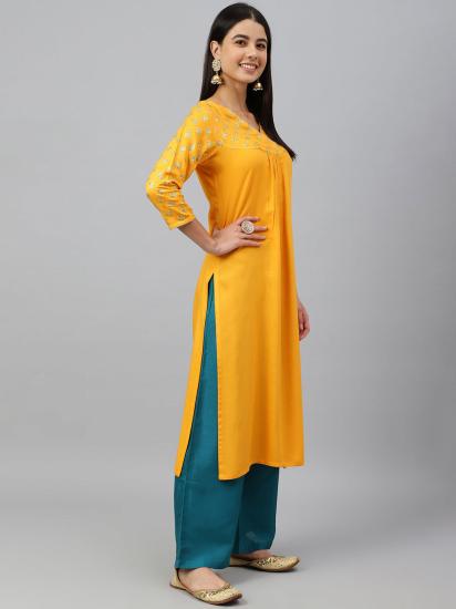 Orange Rayon Gold Floral Print Angarkha Kurta