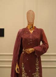 Designer Hand Work Embroidered Fully Stitched With Dupatta And Cotton Satin Pant