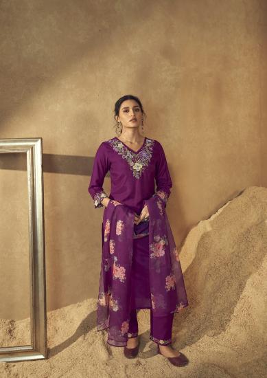 Designer Pakistani Dress Pure Muslin Cotton With Handwork And Embroidery Pant With Organza Dupatta Digital Print Trendy Dress
