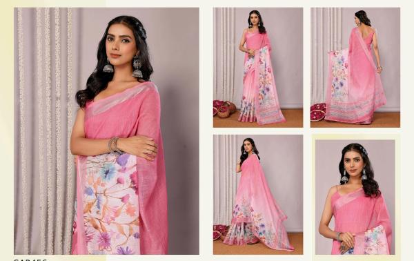 Stylish Linen Cotton Saree Printed Backless Open Shoulder Blouse Design Embroidered Saree