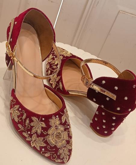 Party Wear Embroidery Works Block Heels For Women And Girls