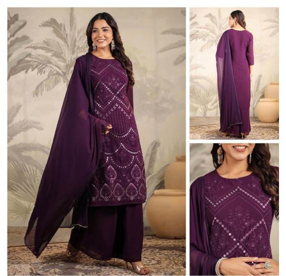 Kurti Plazo Designing Set Fabric Georgette With Duptta Embroidered