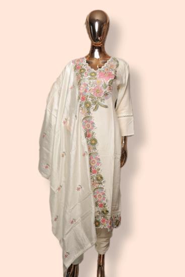Off White Premium Musleen Soft Cotton Fabric Heavy Embroidered Dupatte Embroidery On Yolk