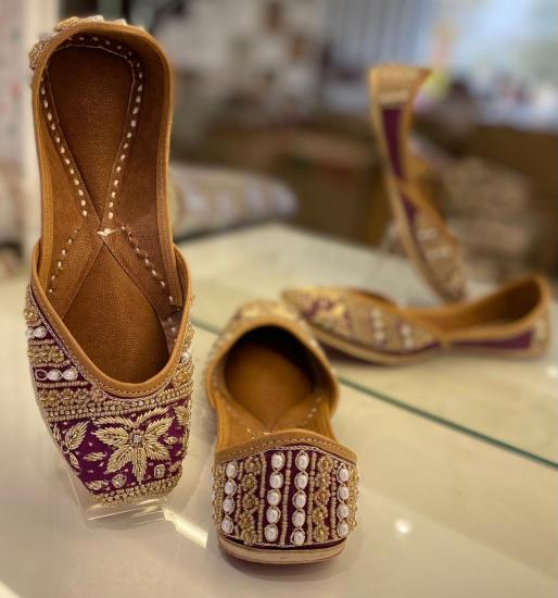 Punjabi Jutti Embroidered Jarkan Hand Work Leather Matterial