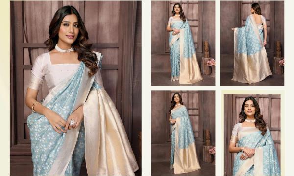 Pure Cotton Saree For Women Designer Printed Golden Border Round Neck Design Half Sleeve Embroidered