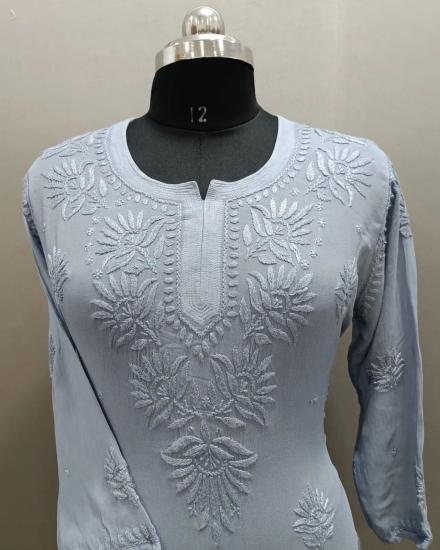 Pure Muslin Fabric Premium Quality Chikankari Kurti Hand Work Embroidery