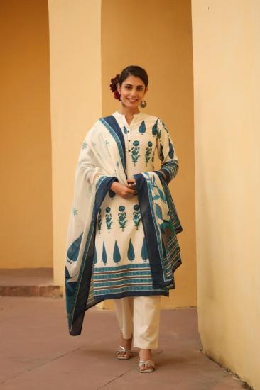 V Neck Style Digital Printed With Linen Bottom And Cotton Printed Dupatta