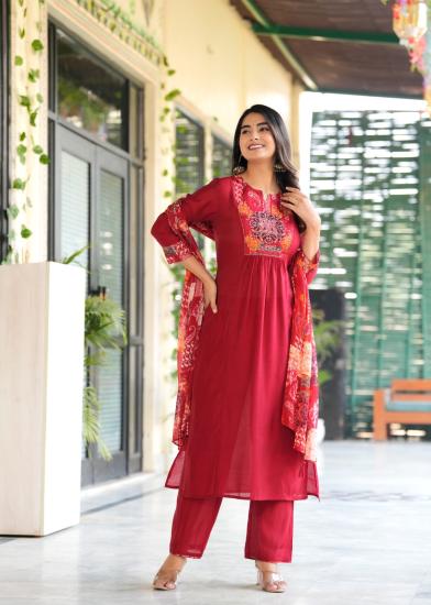 Pure Premium Musleen Designer A Line Plated Embroidered Kurti Form Women