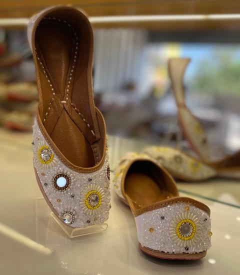 "Experience Radiant Comfort With Our Embroidered Punjabi Juttis For Women. Meticulously Crafted For Both Style And Ease, Each Pair Boasts Intricate Embroidery, Promising A Blend Of Cultural Charm And Modern Flair In Every Step. Mirror Work Embroidery"