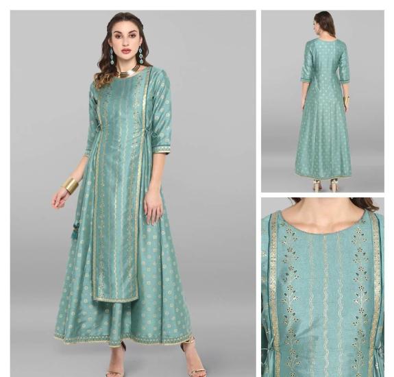 Rayon Crepe Long Kurti Gharara Round Neck Designs Golden Print Sharara Lace Work