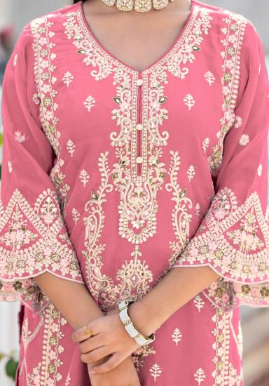 Fully Stitched Readymade Embroidered Plazo Suit Organza Fabric