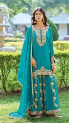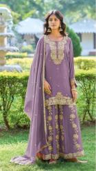 Pure Chinon Embroidered Fabric Khatli Embroidery Work Fully Stitched